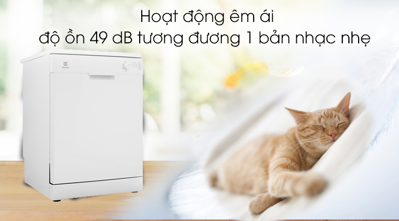 - Máy rửa chén này có độ ồn thấp chỉ 49 dB, mang đến sự thoải mái cho người dùng, không làm ảnh hưởng đến sinh hoạt của các thành viên trong gia đình, kể cả khi bạn thư giãn hoặc ngủ, nếu gia đình cho trẻ nhỏ cũng không cần phải lo lắng.