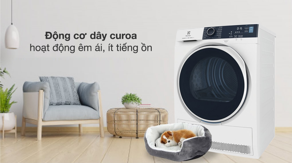 - Máy sấy bơm nhiệt Electrolux máy hoạt động mượt mà, giảm thiểu độ ồn, tránh gây khó chịu cho mọi người xung quanh trong khi máy chạy.