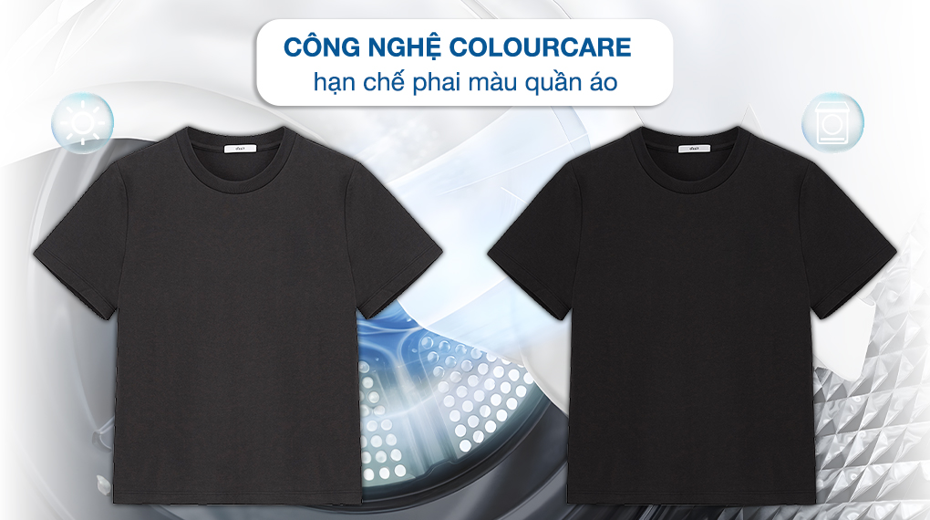 Công nghệ ColourCare: tăng độ bền cho màu sắc của quần áo qua các lần sấy, khả năng phai màu trang phục giảm hơn tới 80% so với phơi khô đồ theo cách thông thường.