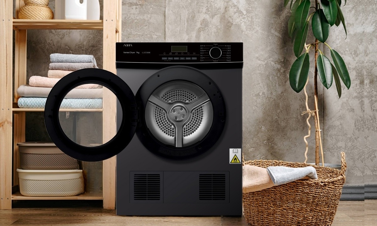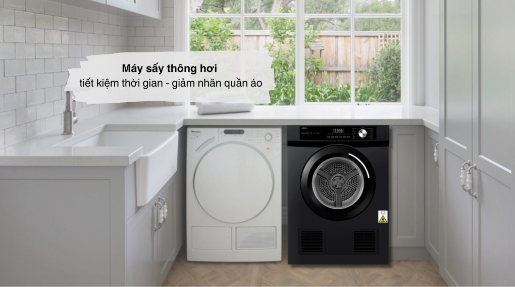 - Ngoài ra, mẫu máy sấy thông hơi AQUA được thiết kế nhỏ gọn giúp người dùng có thể thoải mái lựa chọn vị trí đặt cho thuận tiện. Máy sấy thông hơi AQUA này có khối lượng sấy là 8kg khá phù hợp với nhu cầu giặt giũ của các gia đình nhỏ có từ 3 - 5 thành viên.