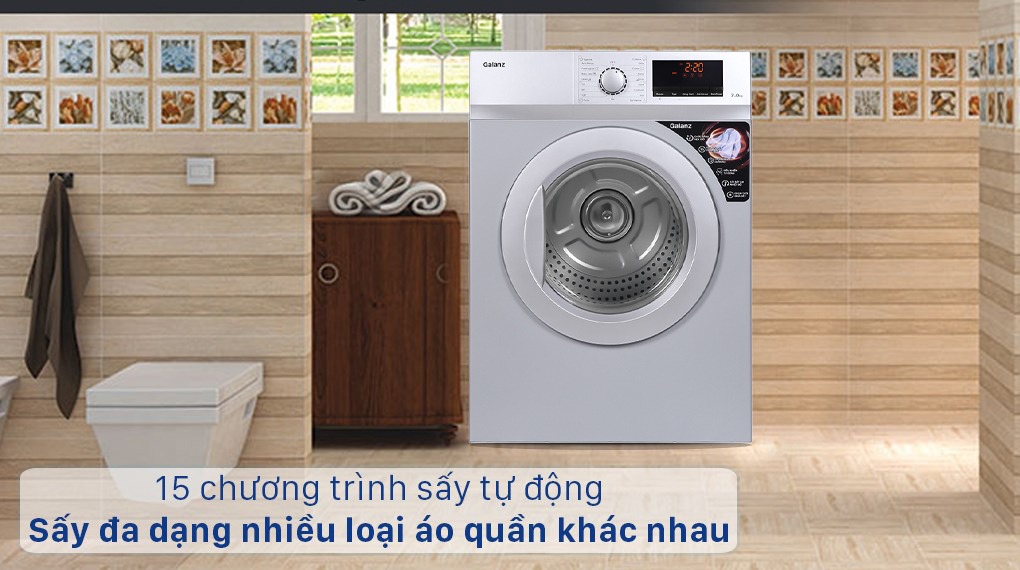 - Với 15 chương trình sấy tự động trên Máy sấy thông hơi Galanz 8 Kg DV-80T5C(W) sẽ giúp bạn thoải mái lựa chọn chu trình sấy phù hợp nhiều chất liệu vải khác nhau mà không phải lo sợi vải bị biến dạng hay hư hỏng.