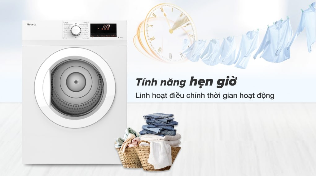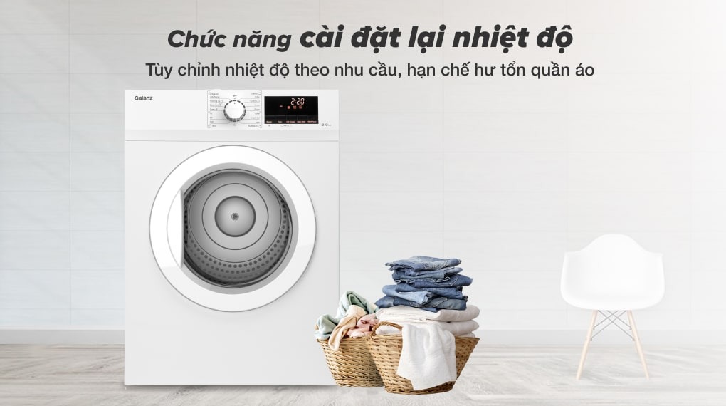 - Máy sấy Galanz DV-80T5C(W) là giải pháp lý tưởng để đơn giản hóa công việc nội trợ hằng ngày của bạn với khả năng bảo vệ quần áo bền đẹp nhờ chức năng chống nhăn, 15 chương trình sấy tự động,... cùng thiết kế đơn giản, sang trọng, xứng đáng nhận được sự quan tâm, tin tưởng của người tiêu dùng.