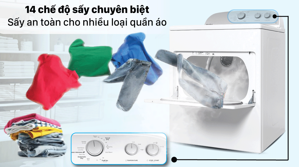 14 chương trình sấy chuyên biệt sấy an toàn cho nhiều loại quần áo khác nhau