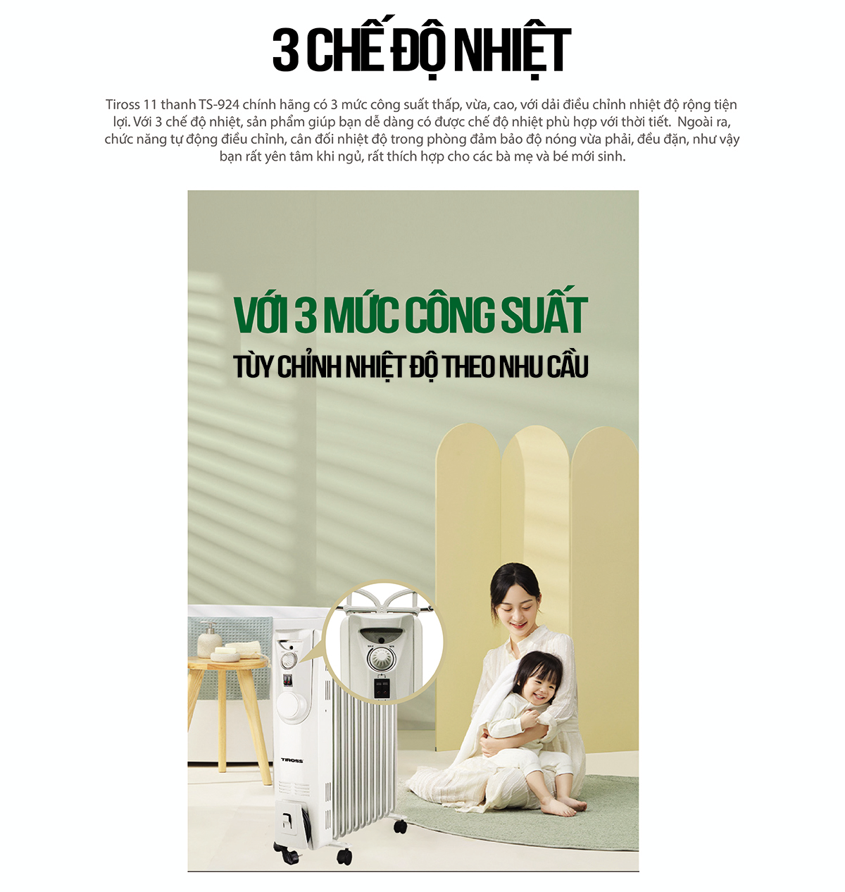 + 3 mức công suất thấp, vừa, cao, với dải điều chỉnh nhiệt độ rộng