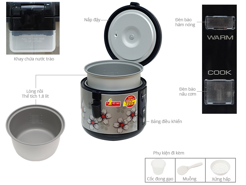 Nồi cơm nắp gài giữ nóng tốt, mở và đóng nắp nồi tiện lợi