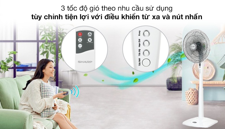 Quạt PJ-S40RV-WH 50W điều khiển bằng nút nhấn đơn giản với 3 tốc độ gió tùy chọn theo nhu cầu sử dụng và thời điểm dùng quạt trong ngày