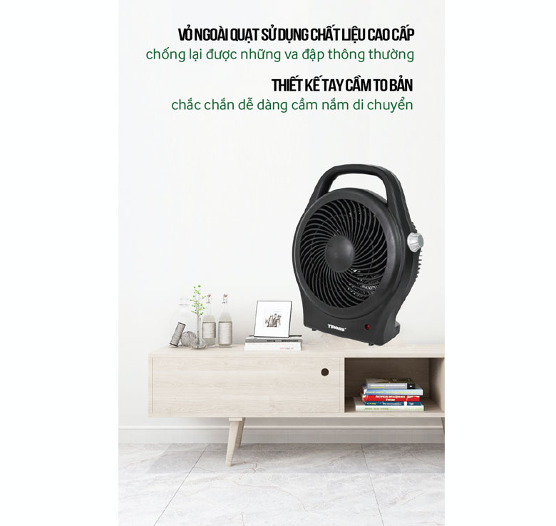 Tay cẩm của TS9441 được thiết kế dạng to bản, cầm nắm dễ dàng và an toàn khi muốn di chuyển quạt sưởi. Vỏ ngoài được chế tạo từ vật liệu cao cấp, chống móp vỡ khi xảy ra những va đập thông thường.
