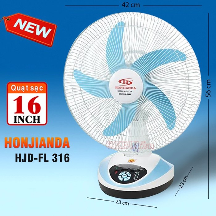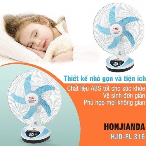 Quạt tích điện Honjianda HJD-FL 316 có lồng quạt được thiết kế chắc chắn bằng nhựa cao cấp