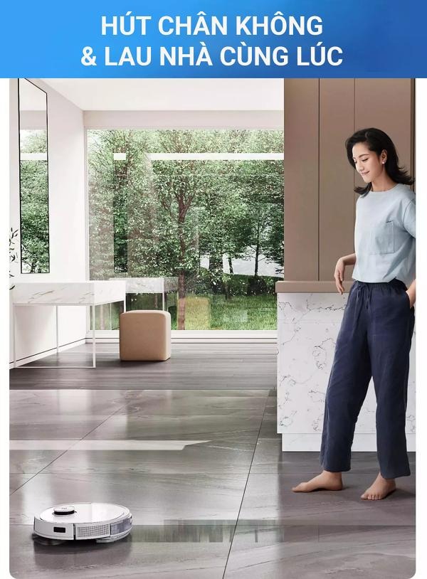 | Tiện ích | Cảm biến chống rơi, chống va chạm Điều khiển qua kết nối trên điện thoại thông minh Lưu được 3 bản đồ Tự quay về đế/trạm sạc Air Freshener khử mùi, thanh lọc không khí Tương thích với trợ lý ảo Tính năng tường ảo Vừa hút vừa lau nhà Ghi nhớ khu vực chưa vệ sinh Hẹn giờ |