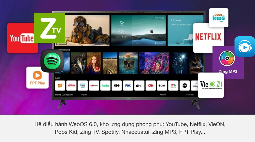 | Ứng dụng | ⦁ YouTube ⦁ YouTube Kids ⦁ Netflix ⦁ Galaxy Play (Fim+) ⦁ Clip TV ⦁ FPT Play ⦁ MyTV ⦁ POPS Kids ⦁ TV 360 ⦁ VTVcab ON ⦁ VieON ⦁ Nhaccuatui ⦁ Spotify ⦁ Trình duyệt web |