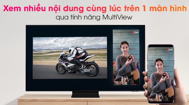 Tính năng MultiView giúp bạn chia đôi màn hình tivi tiện lợi, một bên vẫn theo dõi nội dung đang phát, một bên là nội dung được truyền từ điện thoại qua