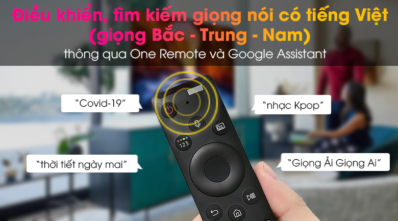 | Điều khiển tivi bằng giọng nói | Bixby (Chưa có tiếng Việt) Tìm kiếm giọng nói trên YouTube bằng tiếng Việt Google Assistant có tiếng Việt |