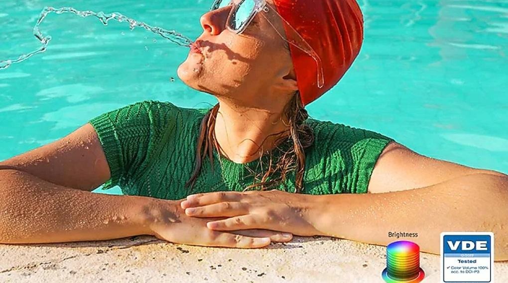 - Màn hình chấm lượng tử Quantum Dot hiển thị 100% dải sắc màu, giúp bạn thưởng thức từng khung hình có màu sắc rực rỡ, sống động.
