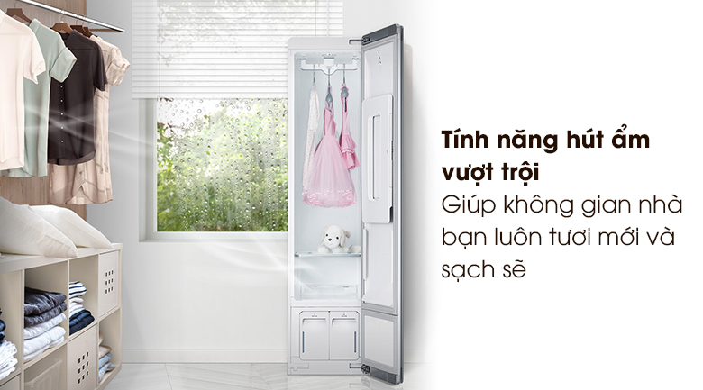 Thiết bị tủ chăm sóc quần áo này còn mang đến tính năng làm khô quần áo nhẹ nhàng dưới nhiệt độ thấp, khắc phục được nhược điểm làm co rút và giảm chất lượng quần áo của các máy giặt sấy thông thường.
