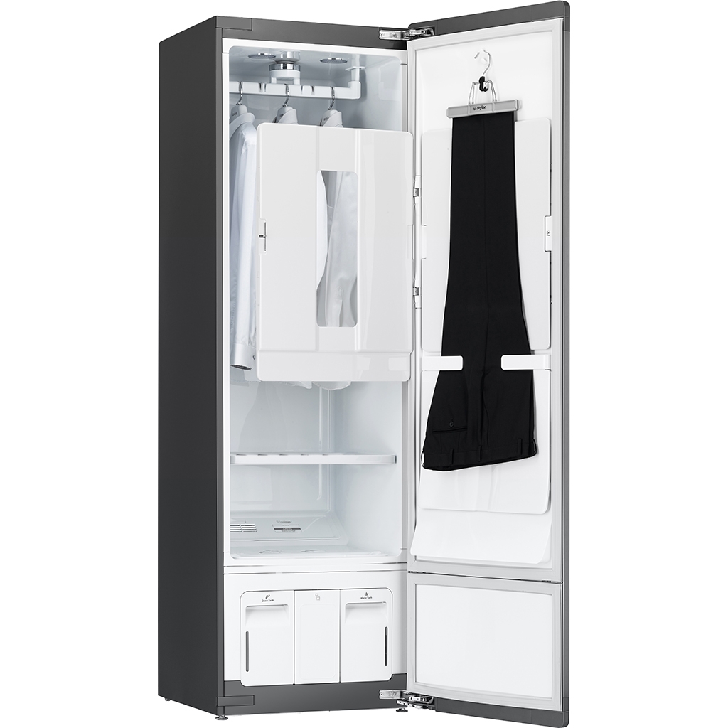 Nâng cấp phòng giặt ủi của bạn với tủ chăm sóc quần áo thông minh LG Styler S5MB. Giữ cho quần áo luôn sạch sẽ, phẳng phiu và thơm tho như mới bằng sức mạnh hơi nước của công nghệ TrueSteam. Hơn thế nữa, LG Styler S5MB còn có khả năng khử trùng quần áo, chăn gối, thú nhồi bông, các loại quần áo đắt tiền như vest, áo len, đầm dạ hội, đồ lông vũ,...và loại bỏ các chất gây dị ứng