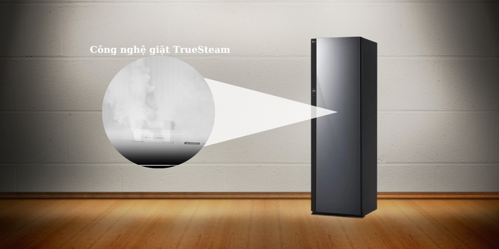 - Chiếc tủ chăm sóc quần áo LG này tích hợp công nghệ giặt TrueSteam áp dụng lượng hơi nước phù hợp với từng loại vải giúp khử khuẩn 99% và loại bỏ mùi hôi khó chịu.