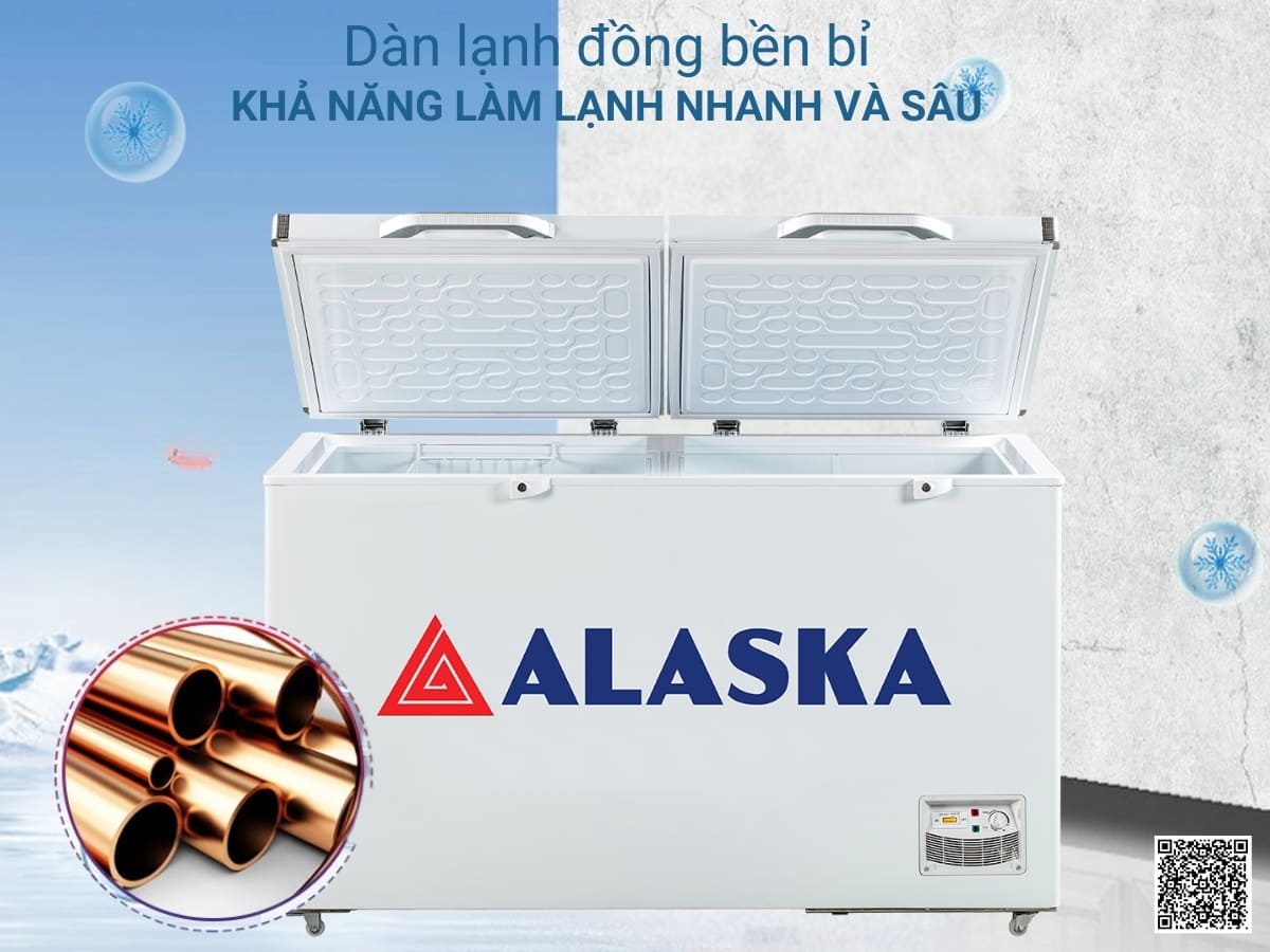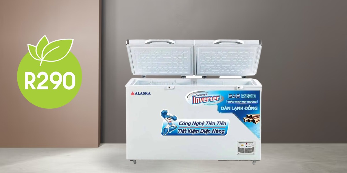 - Được đánh giá là bảo vệ môi trường, Gas R290a đã được Alaska trang bị trên dòng tủ đông của mình. Nhờ loại gas này, tủ có khả năng làm lạnh nhanh chóng nhưng vẫn tiết kiệm điện (điện năng tiêu thụ 220 kWh/năm), hạn chế tối đa chi phí tiền điện hàng tháng.
