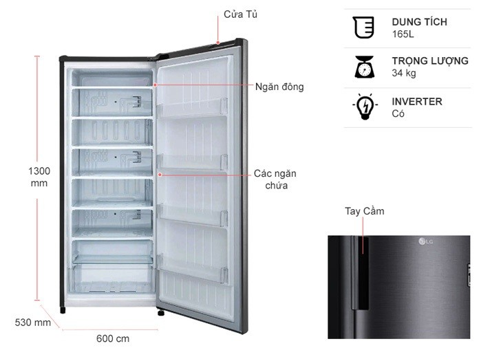 | Kiểu tủ | Tủ đông đứng (không có ngăn mát) |