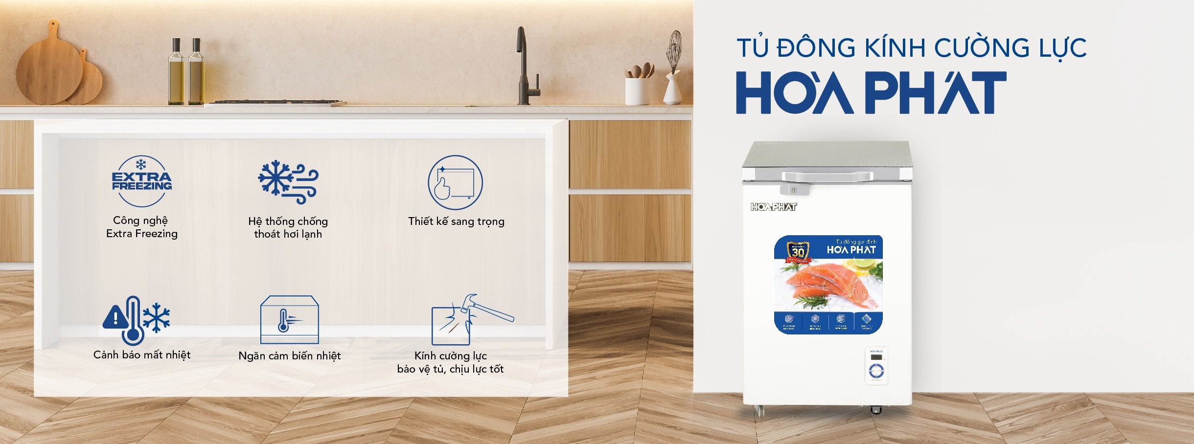 - Hoà phát tự hào tiên phong đặt nền móng công nghệ đông sâu – 30 độ C -extra freezing bằng sự kết hợp giữa công xuất máy nén khoẻ, dàn lạnh làm bằng chất liệu siêu bền dẫn nhiệt tốt và GAS R600a hiệu xuất làm lạnh cao, thân thiện môi trường giúp tủ đông hoà phát đạt độ lạnh sâu lên tới -30 độ c, gấp 2 lần so với tủ thông thường.