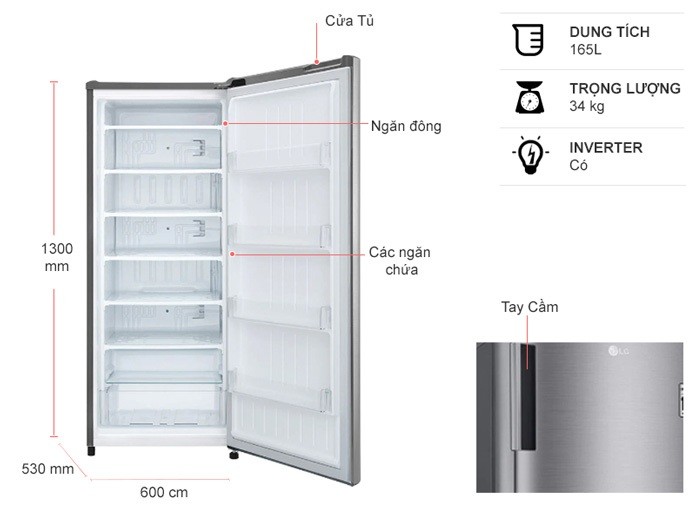 | Kiểu tủ | Tủ đông đứng (không có ngăn mát) |