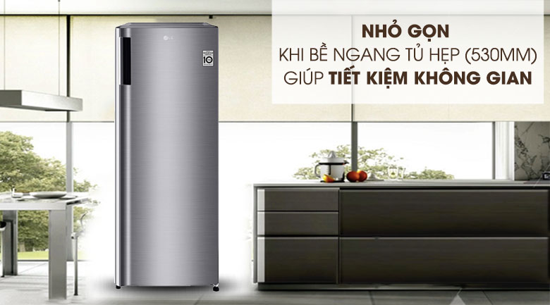 Một ưu điểm khác của chiếc tủ này so với những tủ đông truyền thống khác là tủ được thiết kế dạng đứng, kích thước chiều dài - rộng chỉ đến 53cm - 60cm, giúp bạn tiết kiệm diện tích hơn, đặc biệt là với những căn phòng có không gian hẹp thì đây là lựa chọn hợp lý.