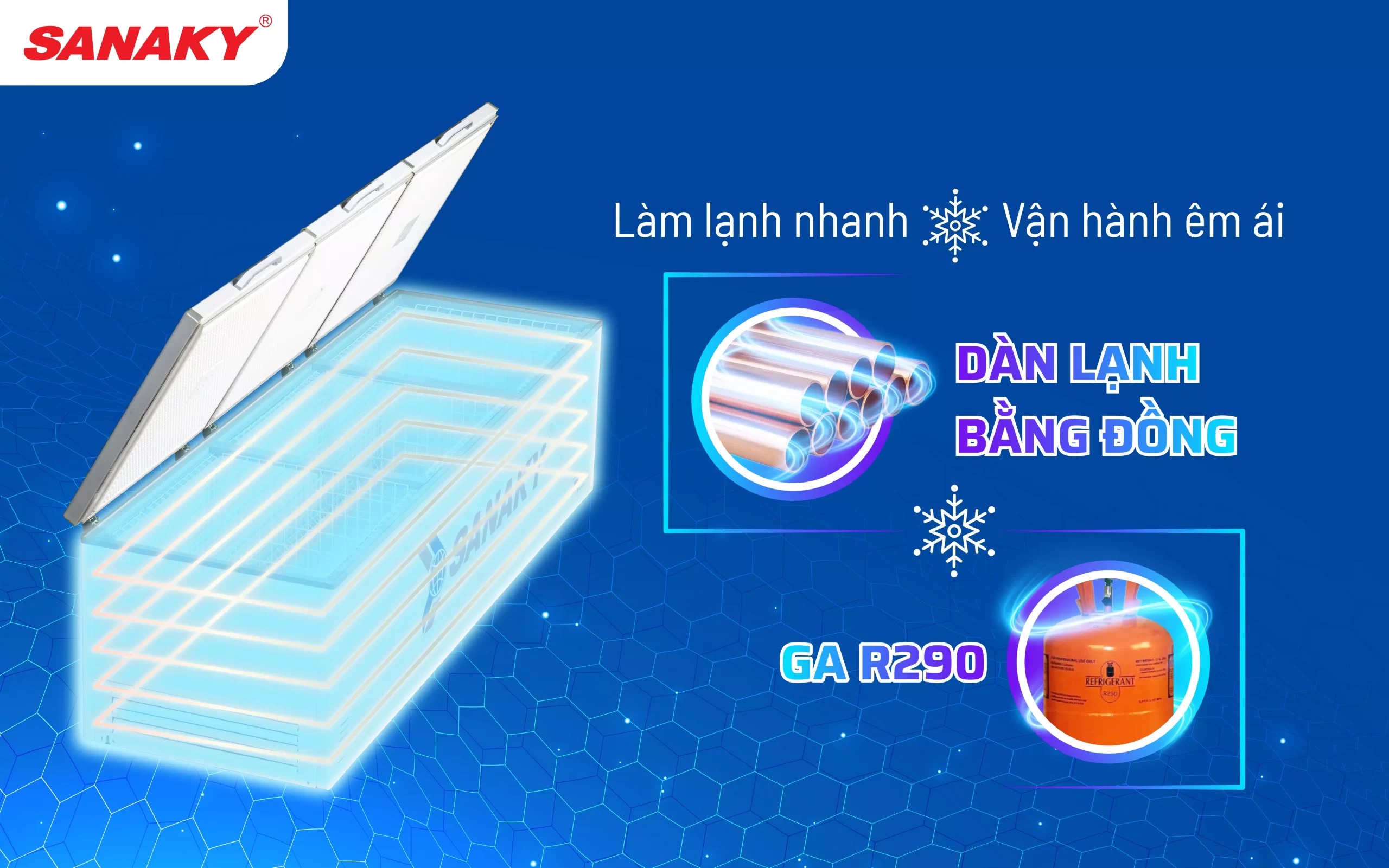 Các sản phẩm của Sanaky đang ngày một cải tiến cùng định hướng tới những sản phẩm thông minh và tiết kiệm năng lượng. Tủ đông Sanaky VH-1799HY sử dụng Gas R290 là dòng Gas tân tiến nhất hiện nay đang được dần thay thế cho các dòng Gas thông thường khác bởi những ưu điểm như