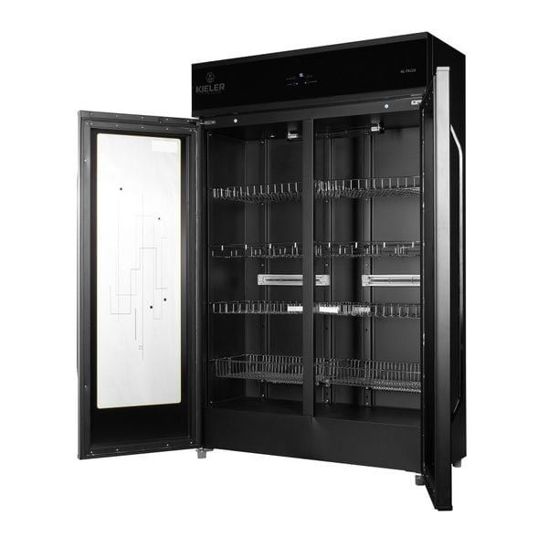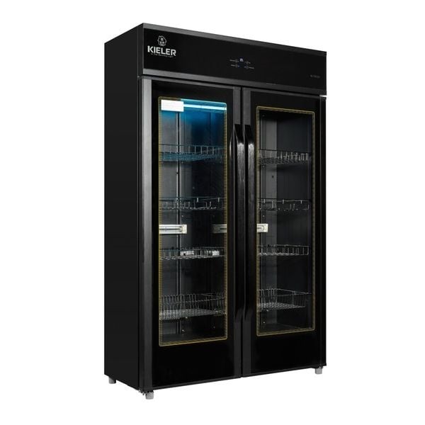 - Kieler KL-TK-122 thiết kế màu đen sang trọng với khung tủ cứng chắc, chịu lực tốt cùng dung tích lớn 600 lít sẽ chứa được nhiều loại bát đĩa, cốc chén, muỗng nĩa để tiệt trùng cùng lúc, tiết kiệm điện và thời gian cho bạn.