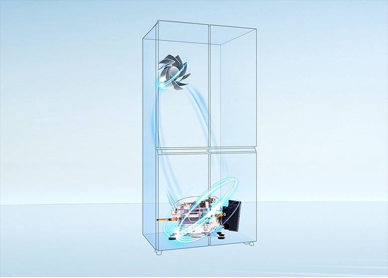 - Làm lạnh đa chiều 360° Cooling tỏa đều luồng khí lạnh đến mọi ngăn chứa trong tủ lạnh, tăng cường khả năng bảo quản độ tươi ngon cho thực phẩm.