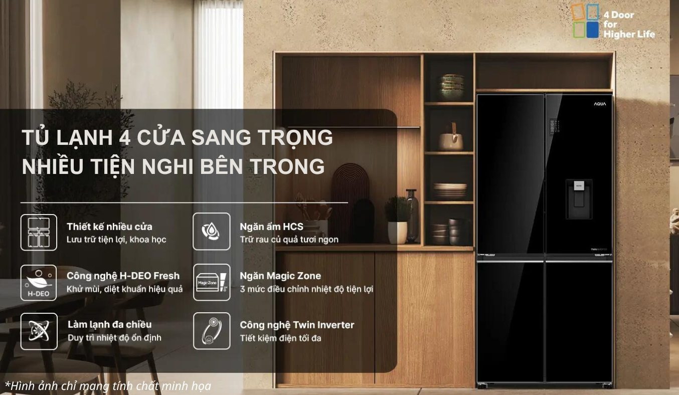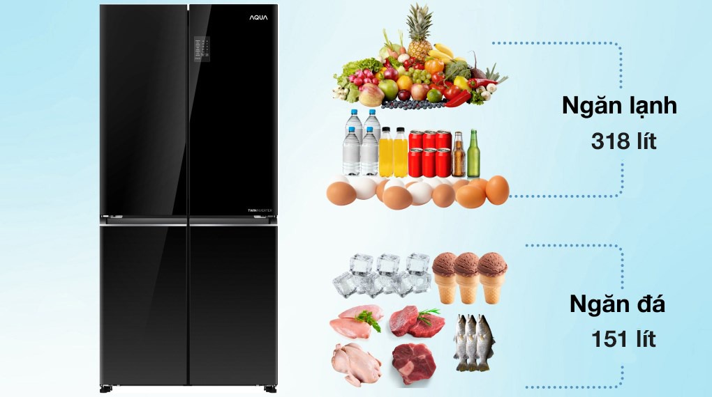 - Tủ lạnh Aqua Inverter 469 lít Multi Door AQR-M536XA(WGB) đem đến cho gia đình bạn một phong cách tối giản nhưng đậm chất sang trọng với mặt kính màu đen, dung tích sử dụng vừa đủ đáp ứng nhu cầu của gia đình có từ 4 - 5 người, tiết kiệm điện năng hiệu quả với công nghệ Twin Inverter, loại bỏ vi khuẩn gây mùi hôi với công nghệ H-DEO Fresh.