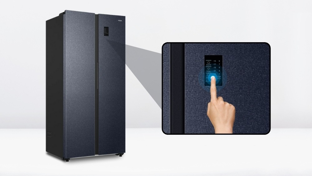 - Bảng điều khiển cảm ứng: Tủ lạnh sở hữu bảng điều khiển dạng cảm ứng, khá nhanh nhạy, được bố trí ngay bên ngoài cửa tủ. Người dùng chỉ cần chạm nhẹ là đã có thể cài đặt nhiệt độ và các chế độ làm lạnh mong muốn.