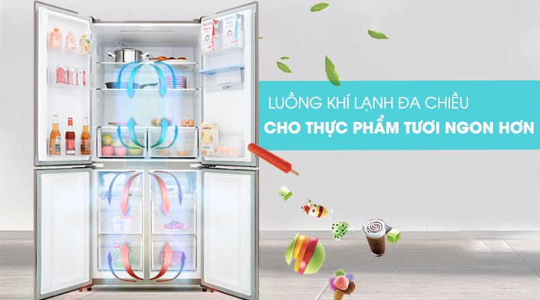 - Hệ thống làm lạnh đa chiều nên tủ lạnh AQR-M600XA(GC) duy trì hơi lạnh đồng đều và hiệu quả cho thực phẩm bên trong tủ được bảo quản tốt hơn.
