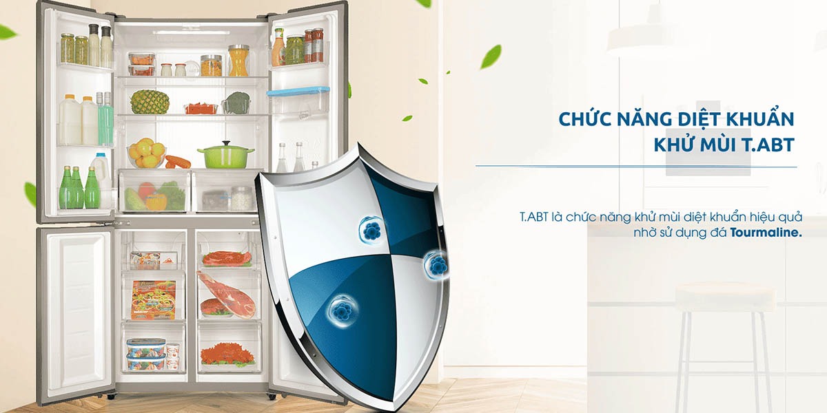 Với công nghệ khử mùi diệt khuẩn Tourmaline (T.ABT) là một giải pháp đặc biệt mang lại không gian sạch sẽ và thơm mát trong tủ lạnh. công nghệ Tourmaline đã được ứng dụng để loại bỏ mùi khó chịu và tiêu diệt vi khuẩn, đảm bảo thực phẩm luôn được bảo quản trong điều kiện tối ưu.