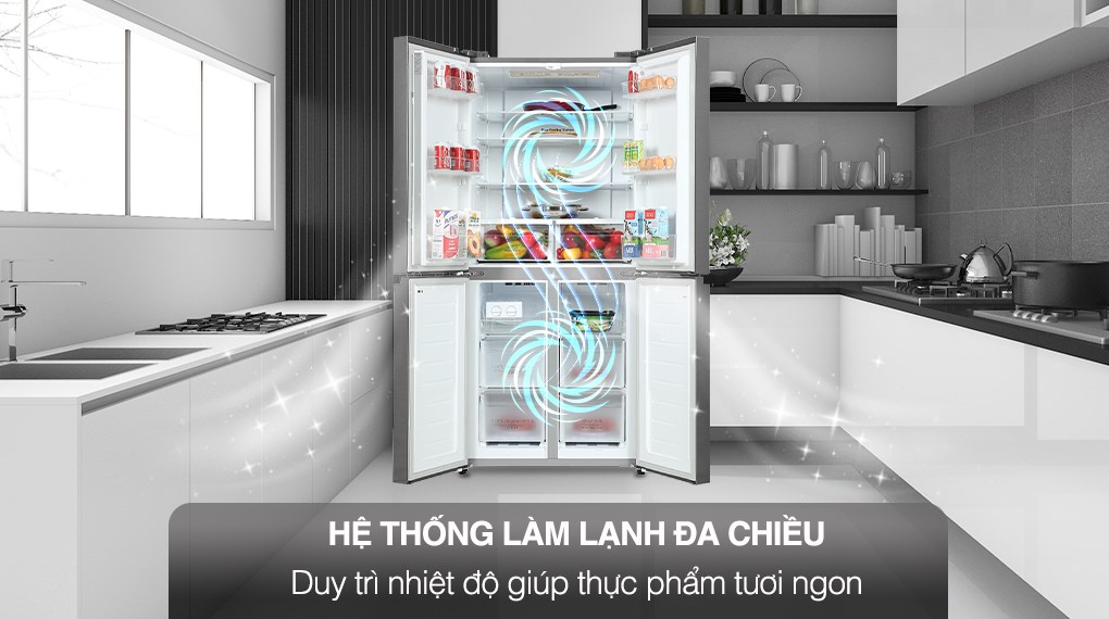 - Công nghệ làm lạnh đa chiều: phân bổ hơi lạnh tỏa đều khắp không gian tủ, đảm bảo thực phẩm được làm lạnh đồng đều, hạn chế quá trình oxi hóa.