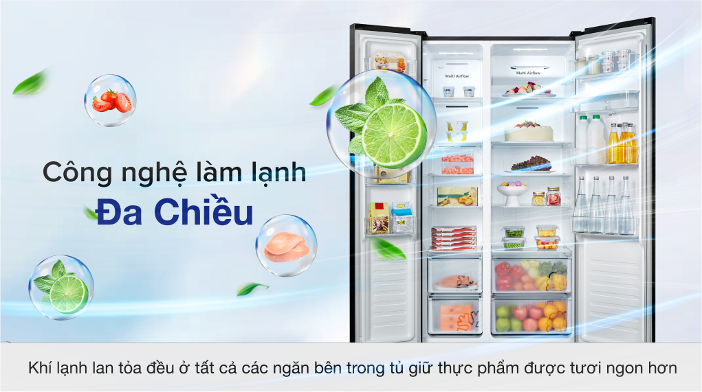 Phân bổ khí lạnh đồng đều khắp các ngăn với công nghệ làm lạnh đa chiều