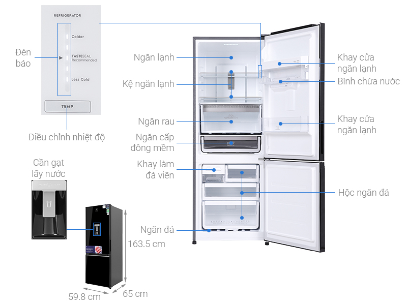 | Kích thước | Cao 163.5 cm - Rộng 59.8 cm - Sâu 65 cm - Nặng 56.7 kg |
