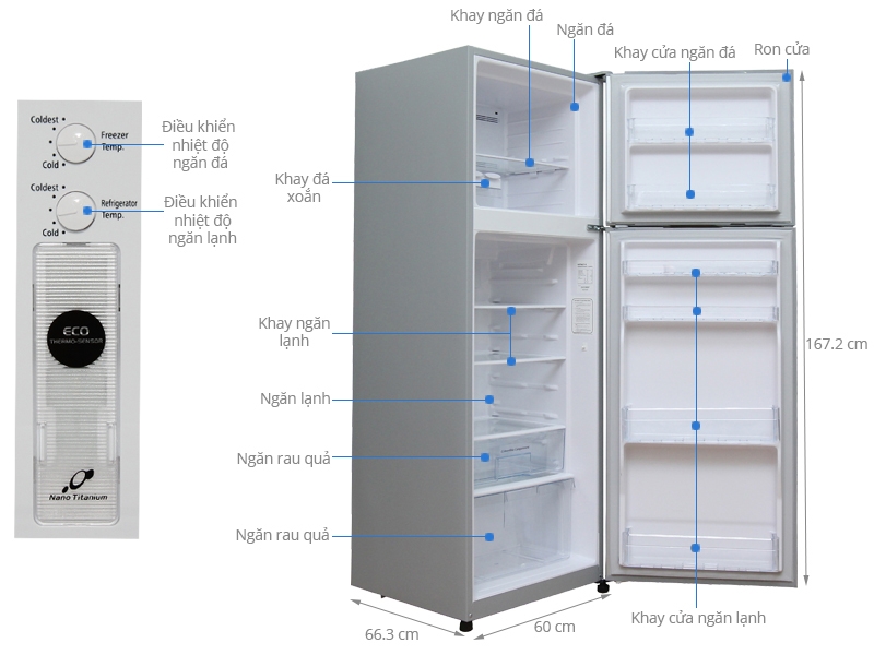 - Cảm biến Eco có chức năng điều chỉnh nhiệt độ một cách chính xác và tự động, tùy thuộc vào nhiệt độ xung quanh và sự thay đổi nhiệt độ trong tủ lạnh. Điều này giúp tủ lạnh hoạt động một cách hiệu quả, bảo quản thực phẩm tốt nhất và tiết kiệm điện năng.