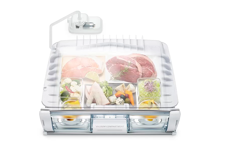Ngăn Chân Không Vacuum Compartment là sự đột phá trong công nghệ của Hitachi mang đến khả năng bảo quản thực phẩm tối ưu. Với cấu trúc ngăn trữ hoàn toàn kín khí, chịu được áp suất ở ngưỡng 0,8 atm (áp suất khí quyển) nhờ máy bơm chân không hút không khí và giảm lượng oxy (nguyên nhân tạo nên hiện tượng oxy hóa gây mất chất) trong suốt quá trình sử dụng.