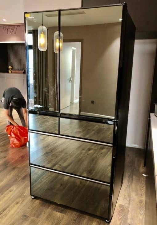 - Tủ lạnh nội địa Nhật Hitachi R-WXC74T là tủ cao cấp nhất nằm trong dòng tủ lạnh cao cấp có 6 cánh. Có thiết kế mặt gương pha lê đen sang trọng. Mẫu tủ lạnh Hitachi R-WXC74T này hội tụ tất cả những công nghệ cao cấp nhất của Hitachi hiện nay trong phân khúc tủ lạnh nội địa Nhật Bản. Tủ lạnh Hitachi R-WXC74T dung tích 735 lít. Với các công nghệ hiện đại nhất và kết hợp với điện thoại thông minh để kiểm soát thực phẩm trong tủ, công nghệ Inverter siêu tiết kiệm điện năng, công nghệ làm lạnh gián tiếp và hút chân không tăng mức độ hoàn hảo cho tính năng của tủ lạnh này.