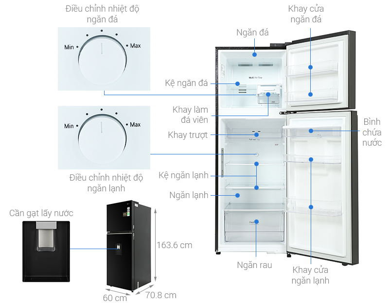 | Kích thước | Cao 163.6 cm - Rộng 60 cm - Sâu 70.8 cm - Nặng 57 kg |