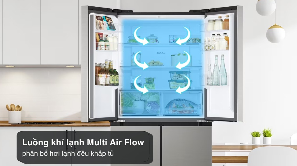 - Luồng khí lạnh đa chiều Multi Air Flow giúp khí lạnh lan tỏa đều khắp các ngăn.