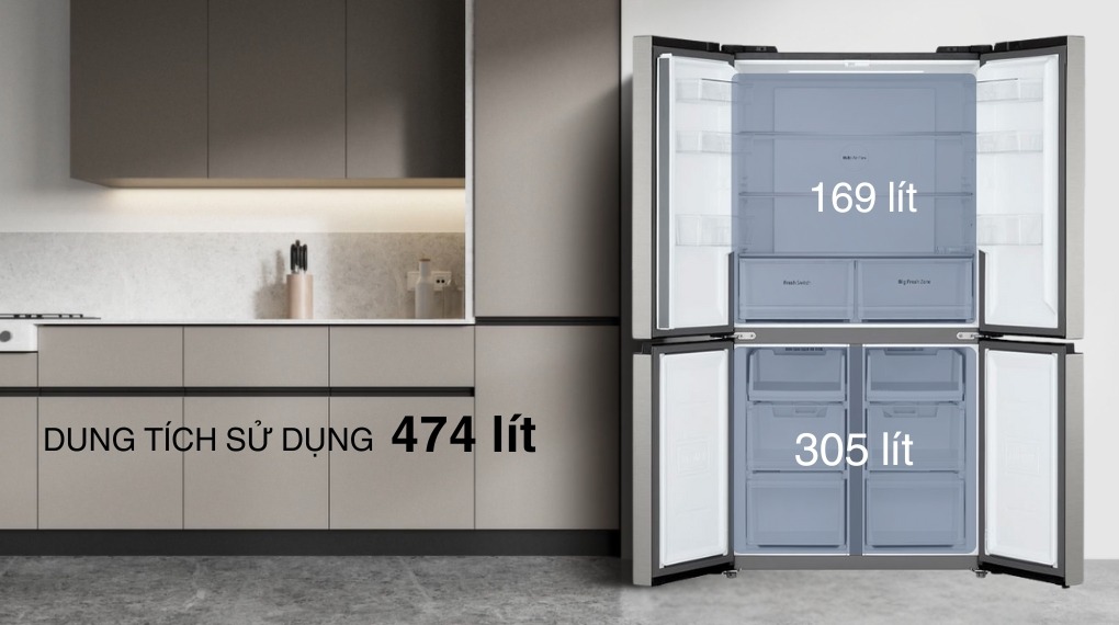 - Dung tích 474 lít có thể phục vụ cho nhu cầu của những gia đình từ 5 thành viên trở lên.