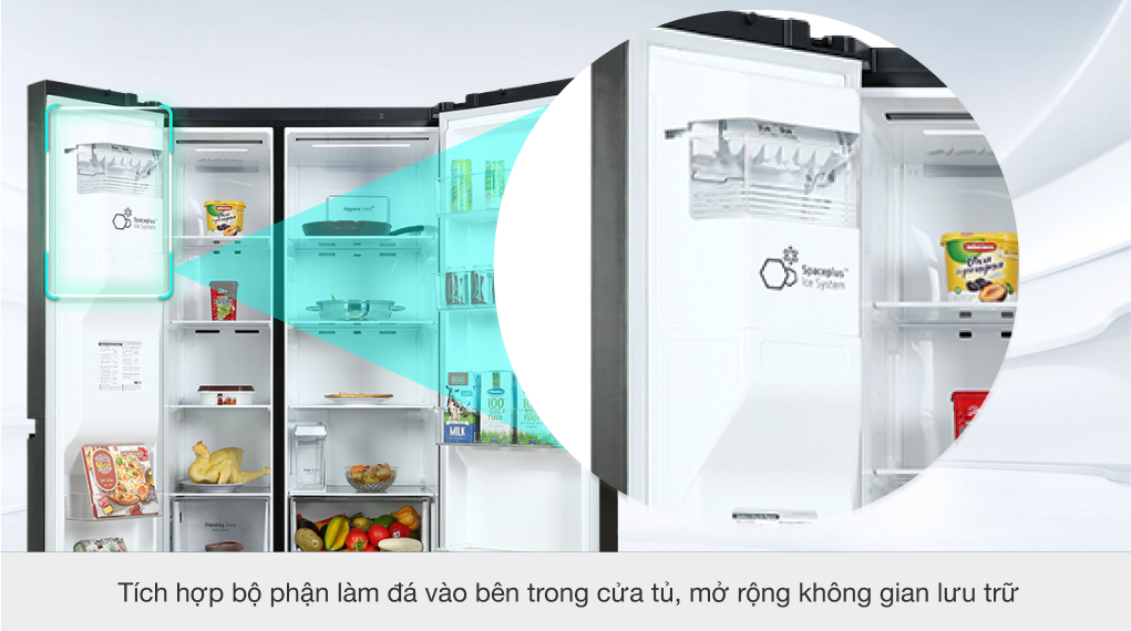 - Hệ thống làm đá tinh gọn SpacePlus™: tiết kiệm diện tích hơn so với hệ thống làm đá thông thường, nhờ đó mà người dùng có thêm không gian để trữ các loại thực phẩm khác.