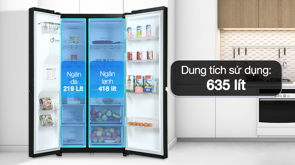 - Dung tích 635 lít có thể phục vụ cho nhu cầu của những gia đình từ 5 thành viên trở lên.