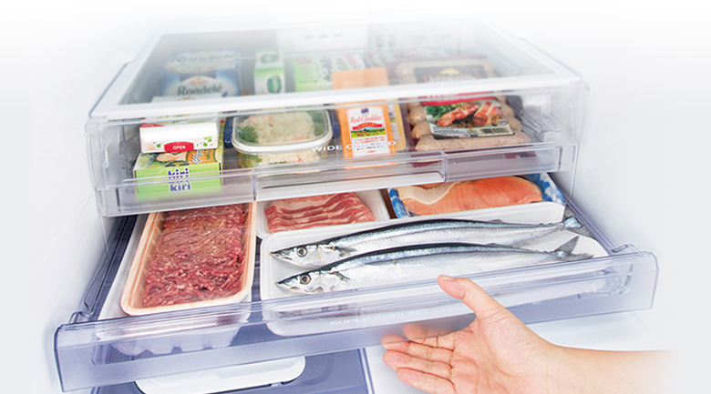 Ngăn mát dạng trượt duy trì nhiệt độ ở mức 0 °C, thích hợp để lưu trữ thực phẩm chế biến sẵn và chế phẩm từ sữa. Với thiết kế rộng và mặt kính trong suốt, bạn có thể dễ dàng tìm kiếm thực phẩm đã mua cũng như nhận biết hạn sử dụng, giúp tránh việc mua thêm sản phẩm đã có hoặc quên sử dụng.