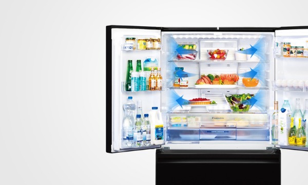 Luồng khí lạnh của tủ lạnh Mitsubishi Electric Inverter 580 lít MR-LA72ER-GSL được thổi xung quanh từ sau ra trước, giúp khí lạnh lan tỏa đều đến từng ngóc ngách đảm bảo thực phẩm không bị hư hỏng trong quá trình lưu trữ.