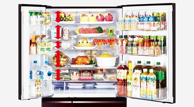 - Tủ lạnh thiết kế ngăn kệ có thể thay đổi, di chuyển linh hoạt, thuận tiện hơn khi xếp đặt, lưu trữ nhiều loại thực phẩm, đồ uống với kích thước khác nhau.