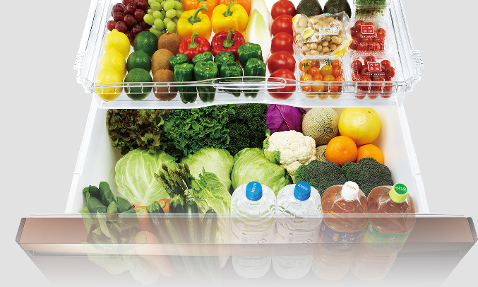 - Tủ lạnh có ngăn rau quả dung tích lớn, được chia làm 2 khay riêng biệt giúp dễ dàng phân loại, xếp đặt và tìm kiếm thực phẩm. Ngăn rau quả duy trì độ ẩm lý tưởng bảo quản rau củ luôn tươi ngon. Đèn LED màu vàng cam giả lập ánh sáng mặt trời, giúp quá trình quang hợp tiếp tục diễn ra, tăng cường lượng vitamin C cho rau củ luôn tươi ngon, dinh dưỡng.