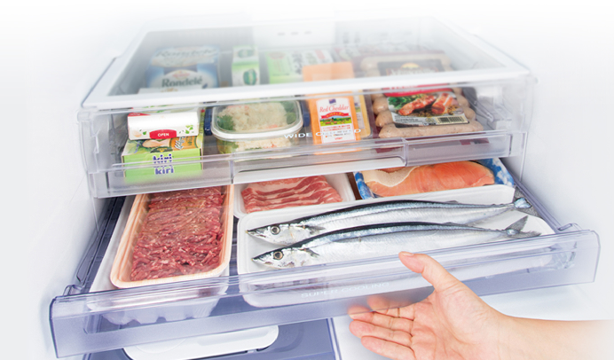 Tủ lạnh Mitsubishi Inverter trang bị ngăn ướp lạnh mềm là nơi vô cùng lý tưởng để trữ thịt, cá và các thực phẩm dễ hư hỏng. Theo đó, ngăn chứa sẽ duy trì nhiệt độ -3oC đến 0oC giúp bảo quản thực phẩm đến 7 ngày, mà không cần phải đóng băng thực phẩm.