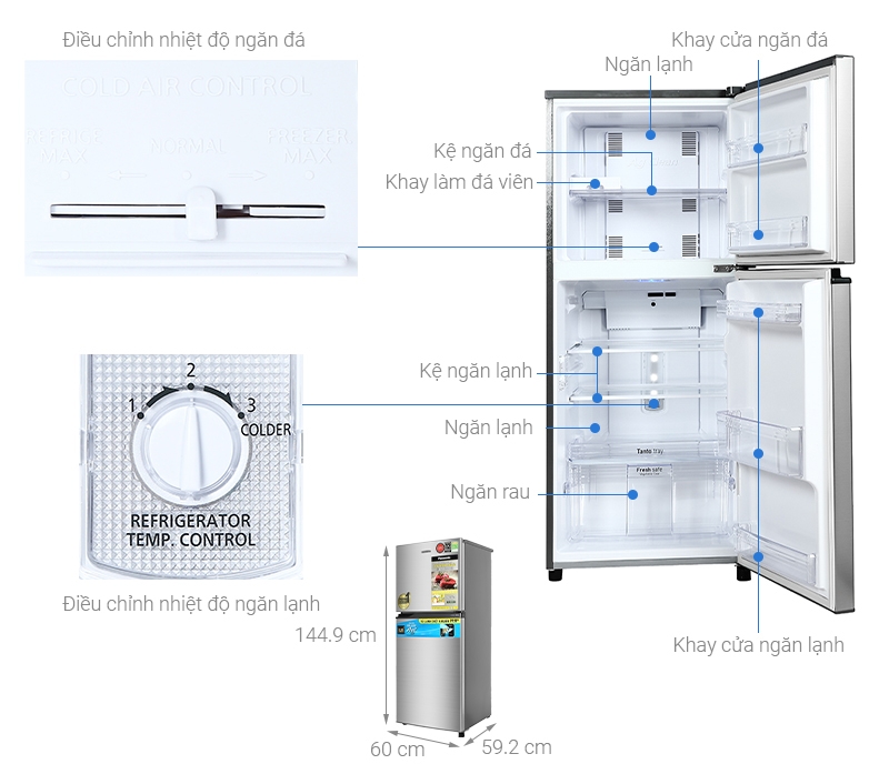 | Kiểu tủ | Tủ 2 cánh - Ngăn đá trên |