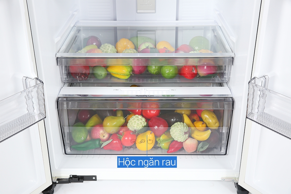 - Đặc biệt, ngăn rau củ kép giúp kiểm soát độ ẩm thực phẩm, độ tươi ngon của rau củ và giúp người dùng dễ dàng phân loại, sắp xếp thực phẩm theo nhu cầu.